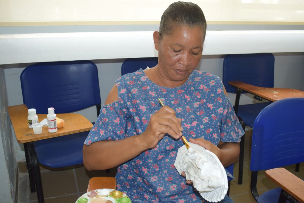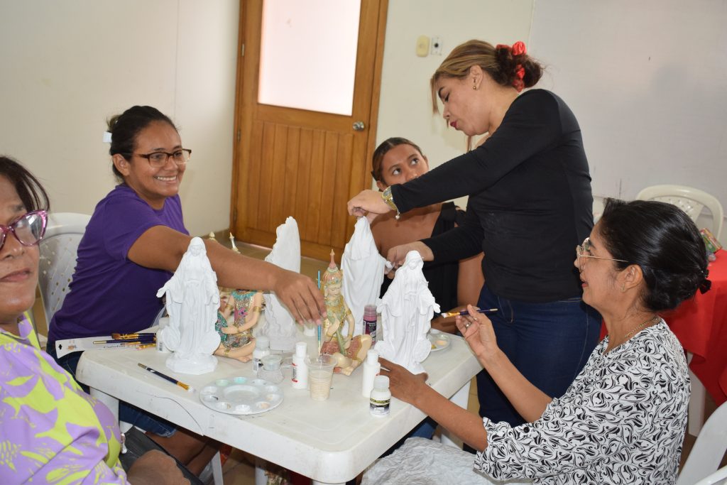 Seguimos desarrollando el programa Club de Mujeres, a través del cual brindamos cursos de formación a las cónyuges de nuestros colaboradores. En este espacio reciben diferentes cursos como preparación de alimentos, confección de cojines y pintura de figuras religiosas.